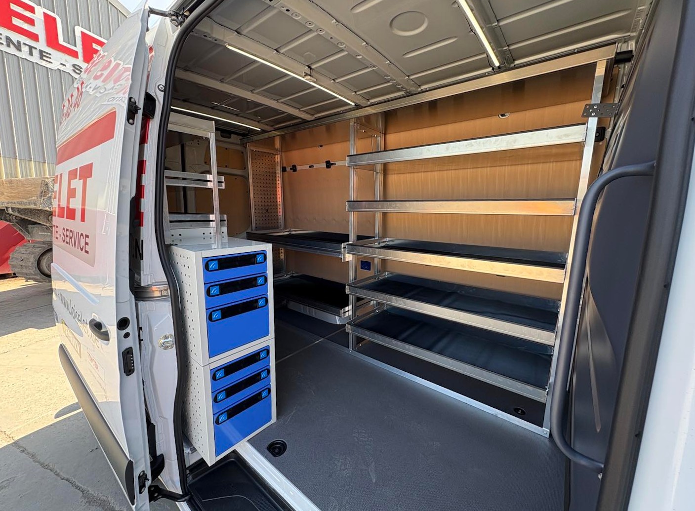 Pour Loiselet, nous avons réalisé un aménagement Mercedes Sprinter L2H2 décliné en flotte de 4 véhicules. Cette configuration, reconduite à plusieurs reprises par le client, standardise l’équipement, facilite la prise en main par les équipes et témoigne d’un haut niveau de confiance dans la durabilité de nos solutions.