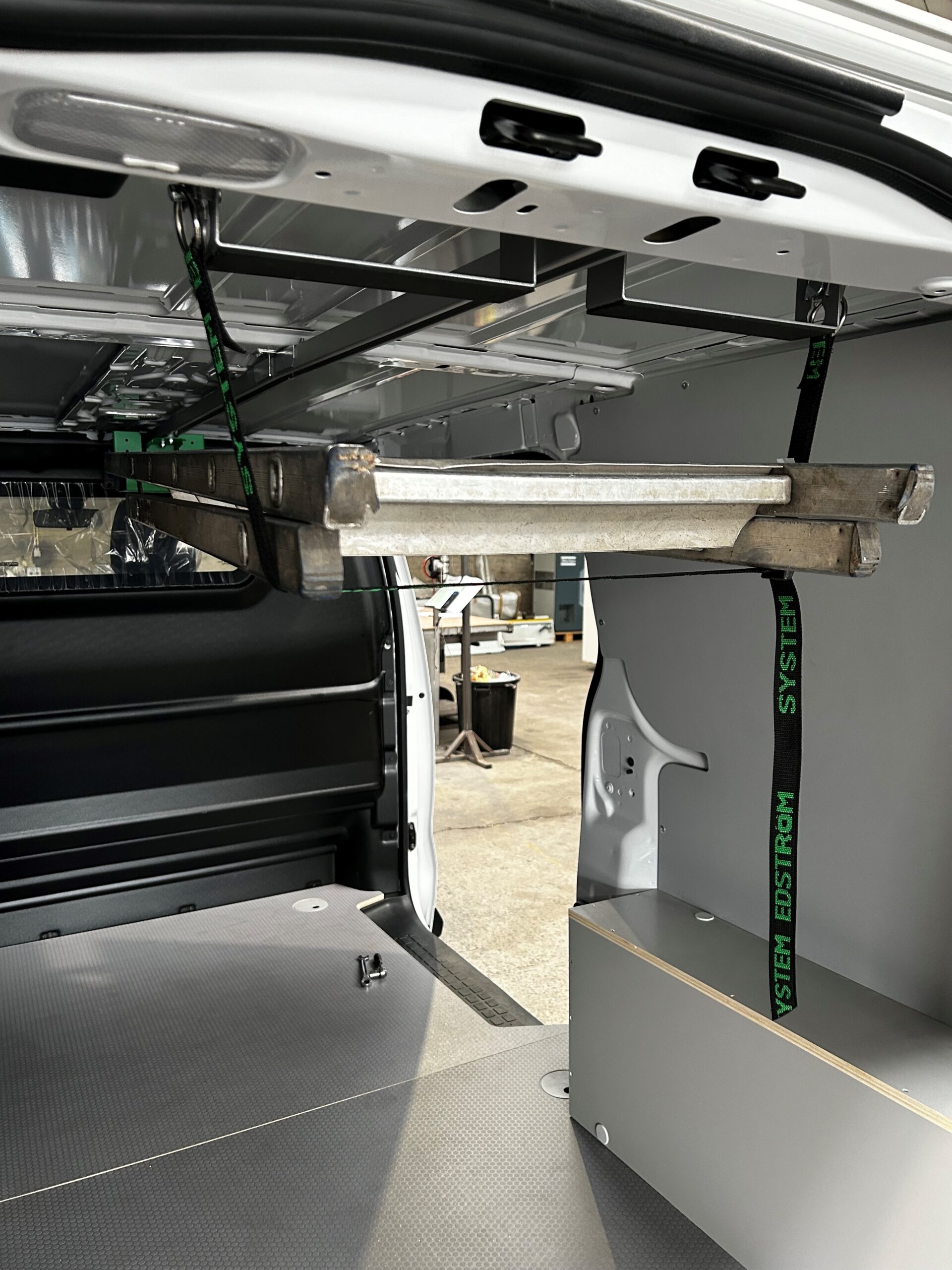 ✅ Support d’échelle fixé au pavillon du véhicule: Permet d’arrimer facilement l’échelle grâce à son support coulissant.