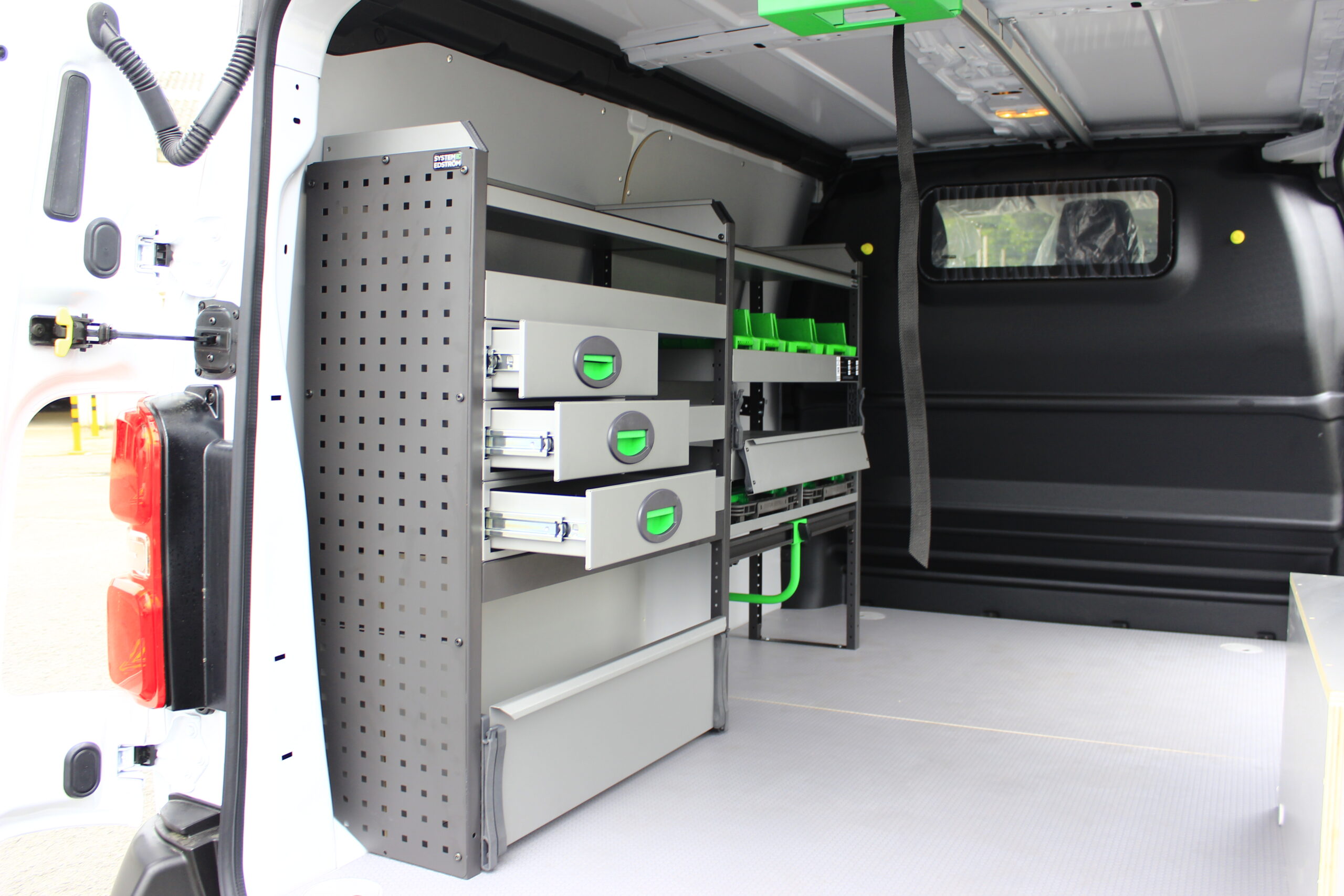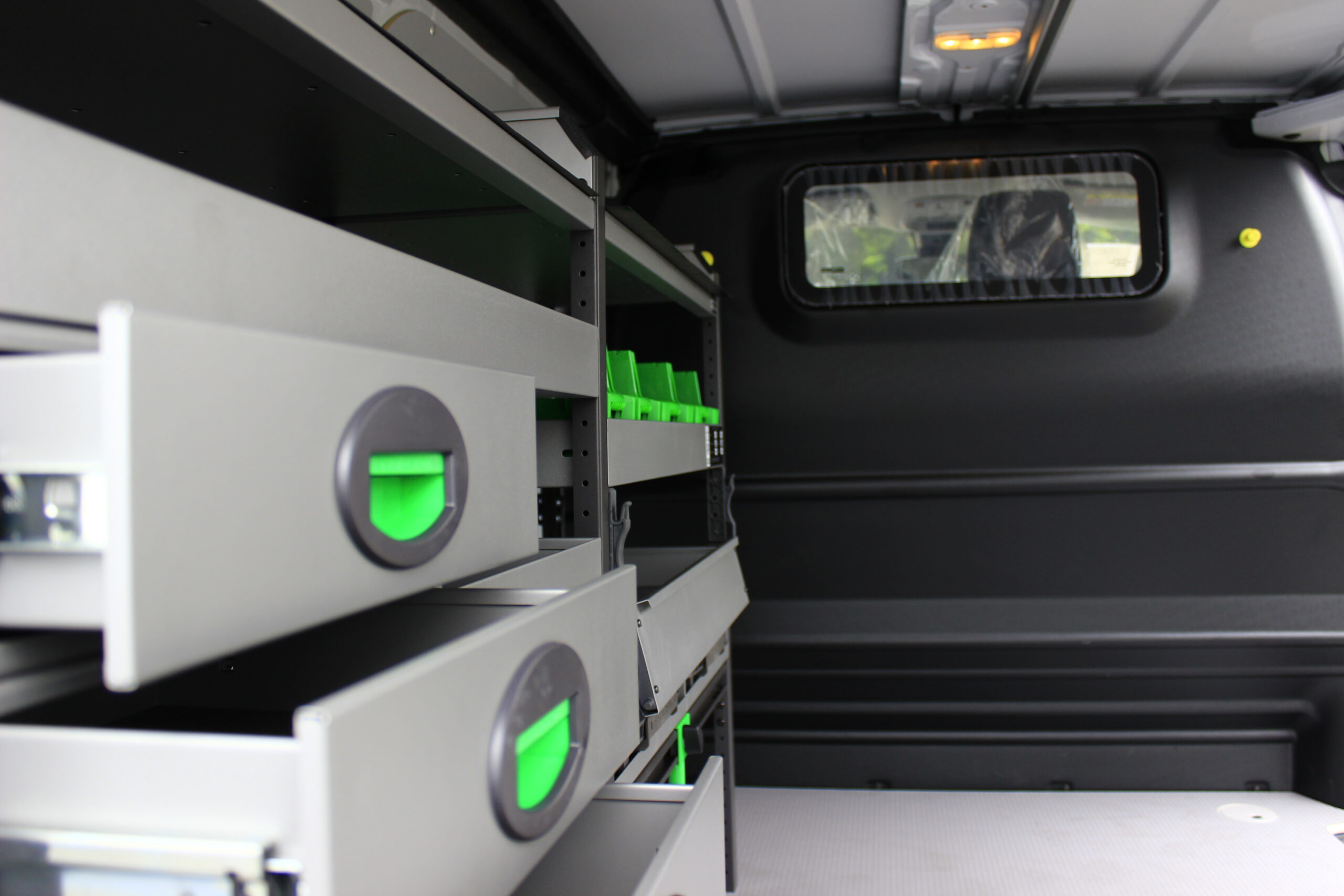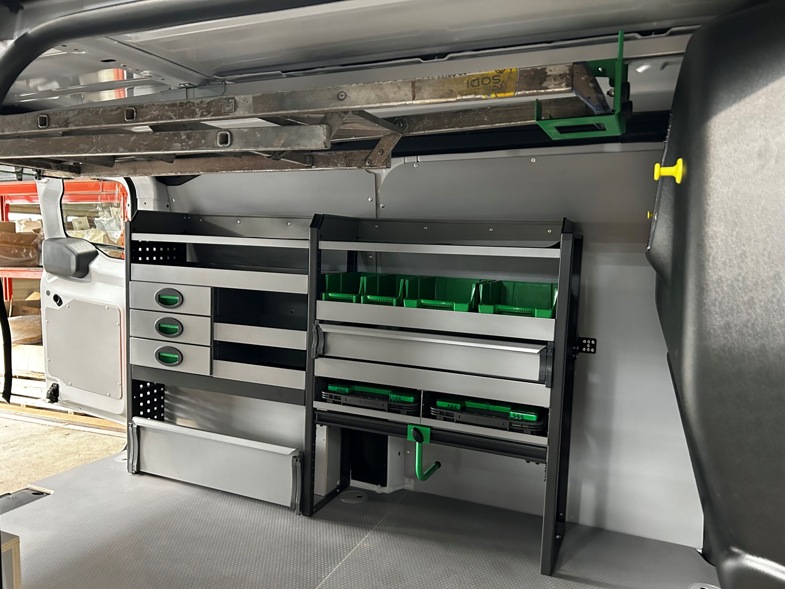 ✅ Aménagement intérieur composé de tiroirs, bacs à bec, façade rabattable, support valisette, kit serre-valise d’outillage. étagère sans rebord.