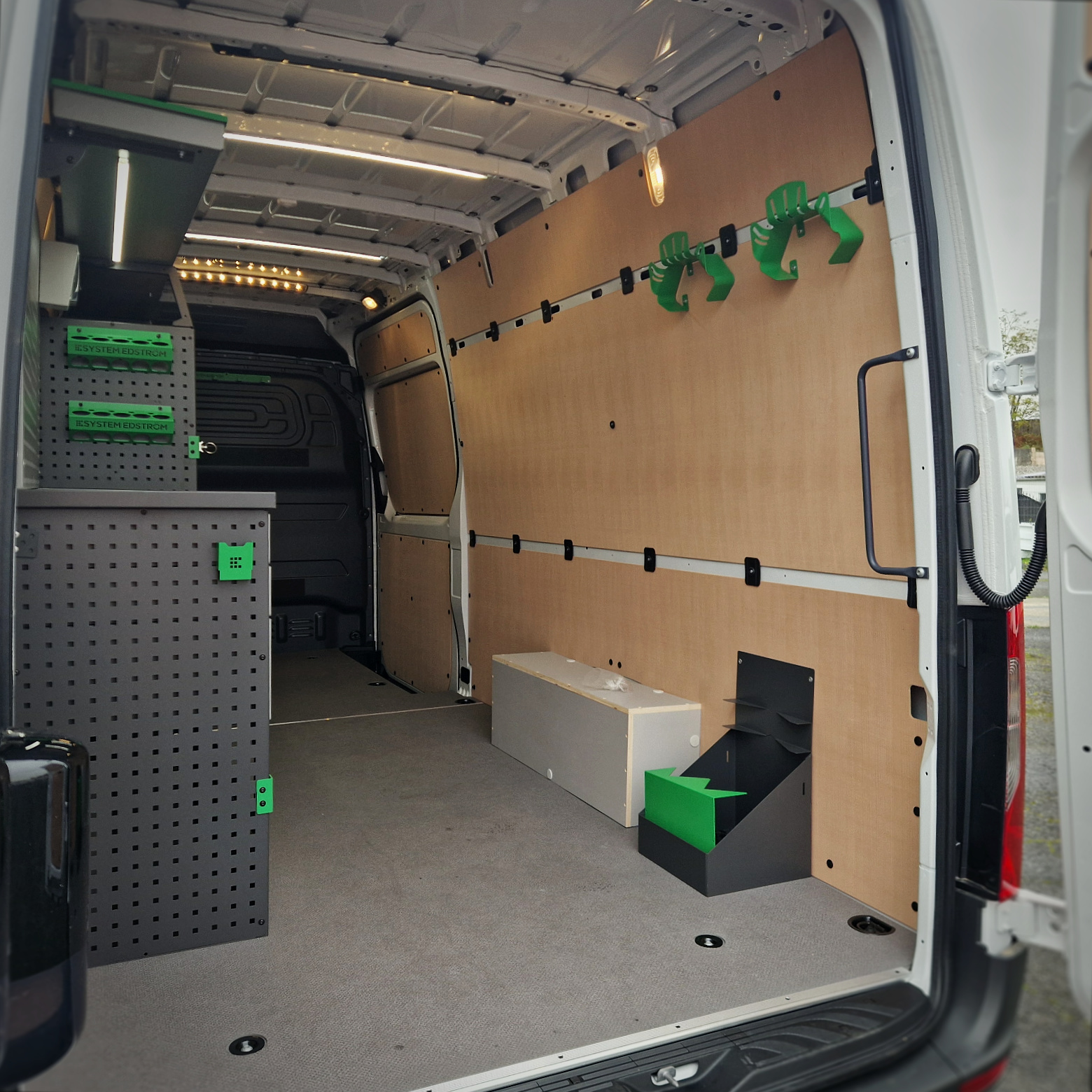 Ce Sprinter aménagé offre à TOA Technics une mobilité accrue, une meilleure organisation du travail et une image professionnelle renforcée. Tous les outils sont à portée de main, l’autonomie électrique est garantie, et la durabilité de Systèm Edström résiste aux conditions difficiles du chantier.