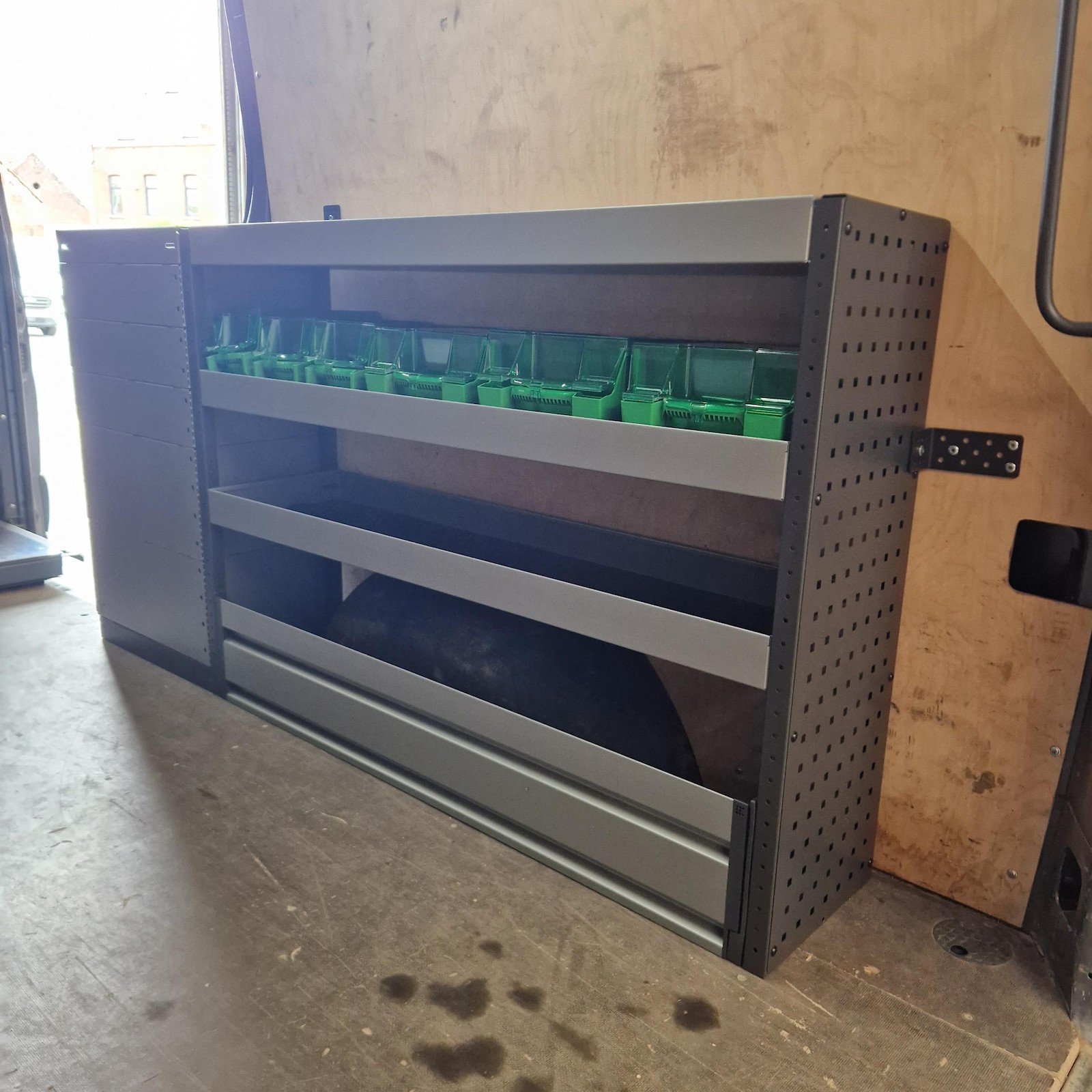 Pour ce Mercedes Sprinter, nous avons conçu un aménagement d’atelier mobile robuste et ergonomique, pensé pour accélérer les interventions et sécuriser le matériel.