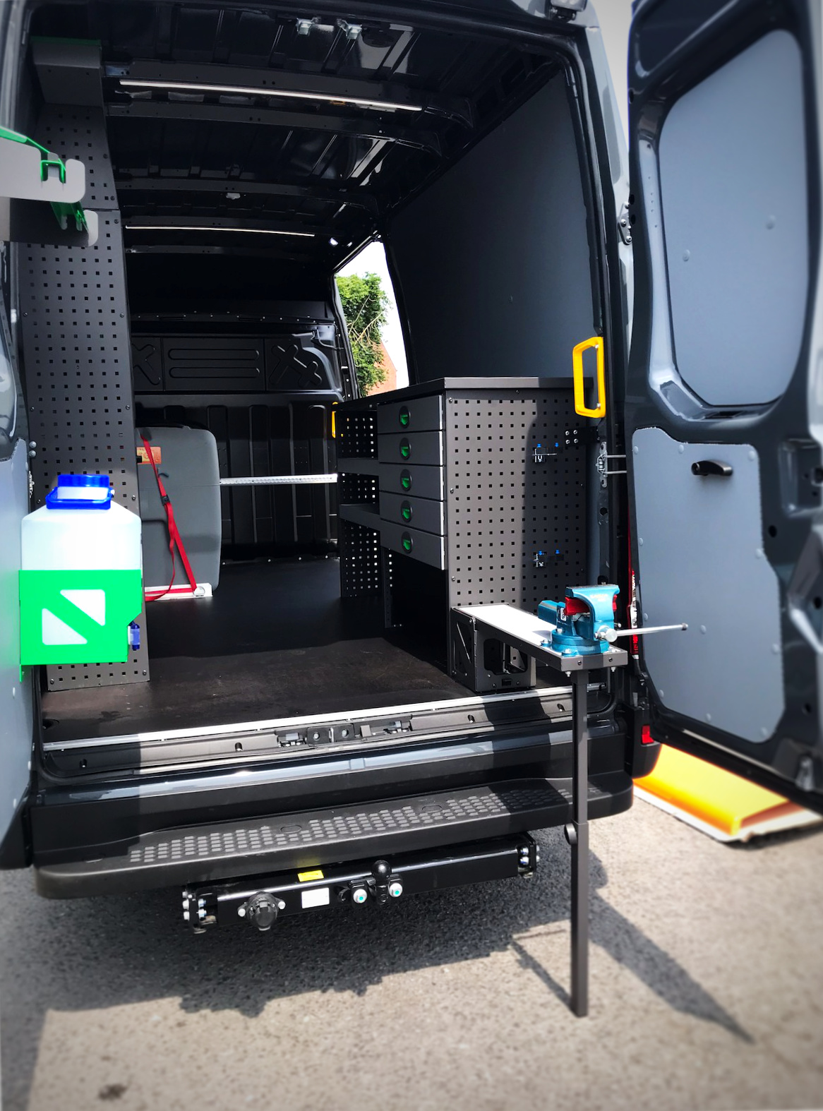 Aménagement d’un Iveco Daily : établi dépliable avec étau et cuve personnalisable
