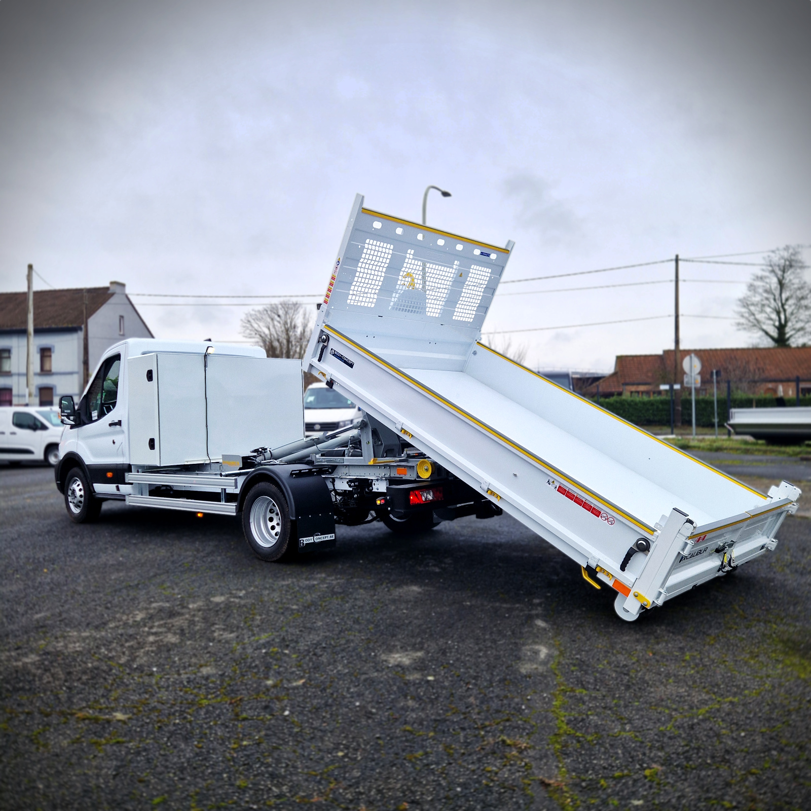 Avec cet ensemble (bras lève-conteneur + solutions de rangement + ridelles), le Ford Transit 5T devient un outil de travail plus structuré, plus efficace et mieux adapté aux interventions régulières. Le résultat : un utilitaire prêt à enchaîner les missions, tout en gardant une organisation claire et un matériel protégé