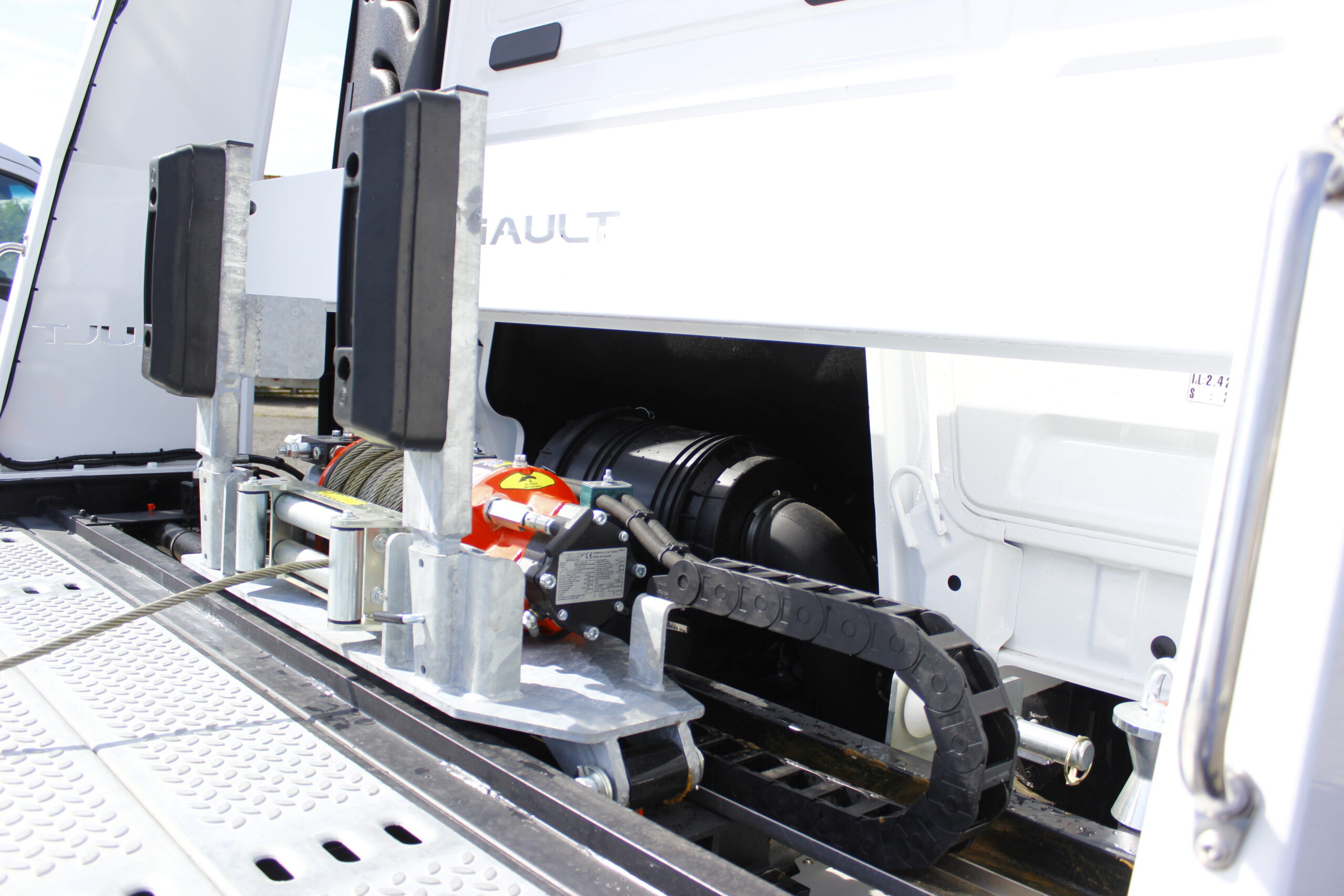 -Une commande RADIO pour le treuil, basculement-coulissement du plateau et éclairage phare de travail