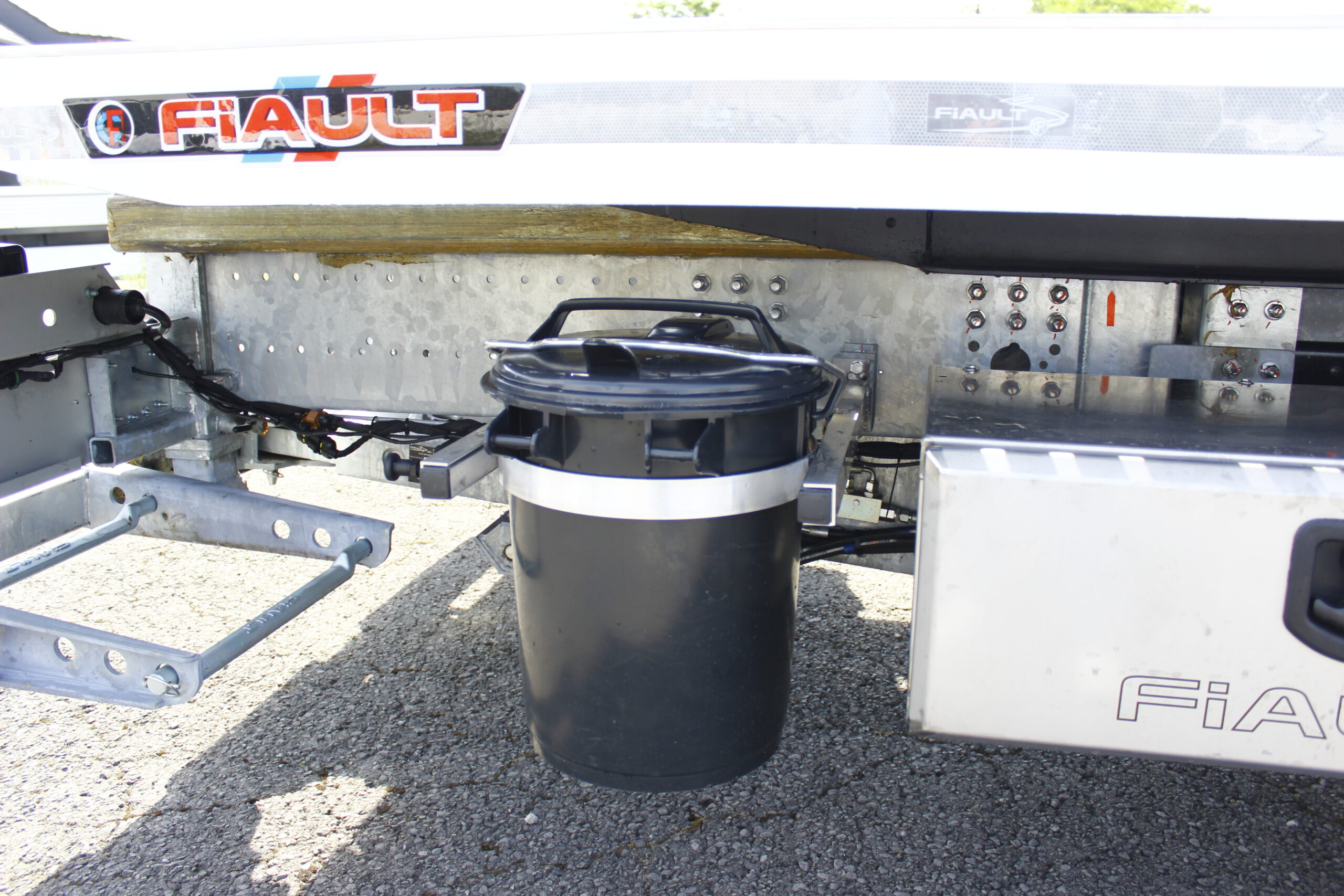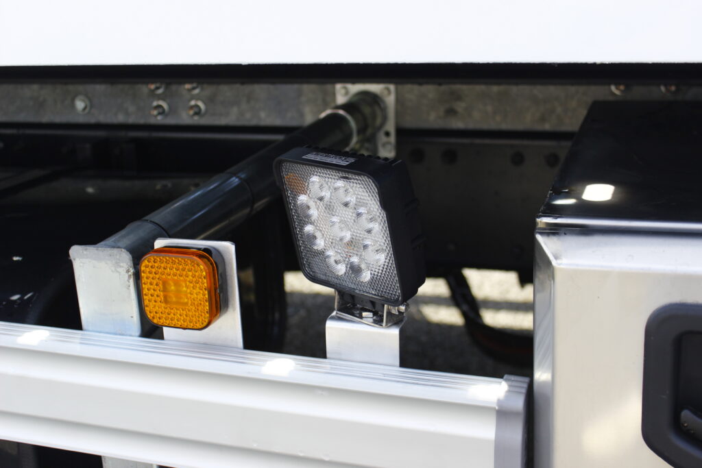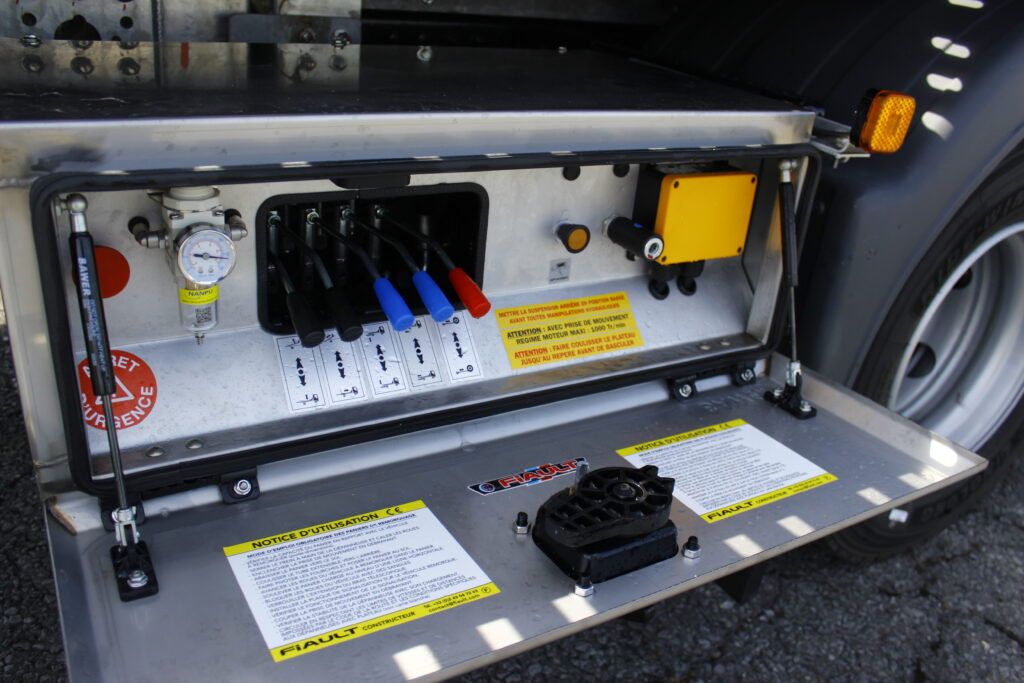 -Distributeurs hydrauliques dans un coffre de protection en inox à l’arrière droit avec éclairage