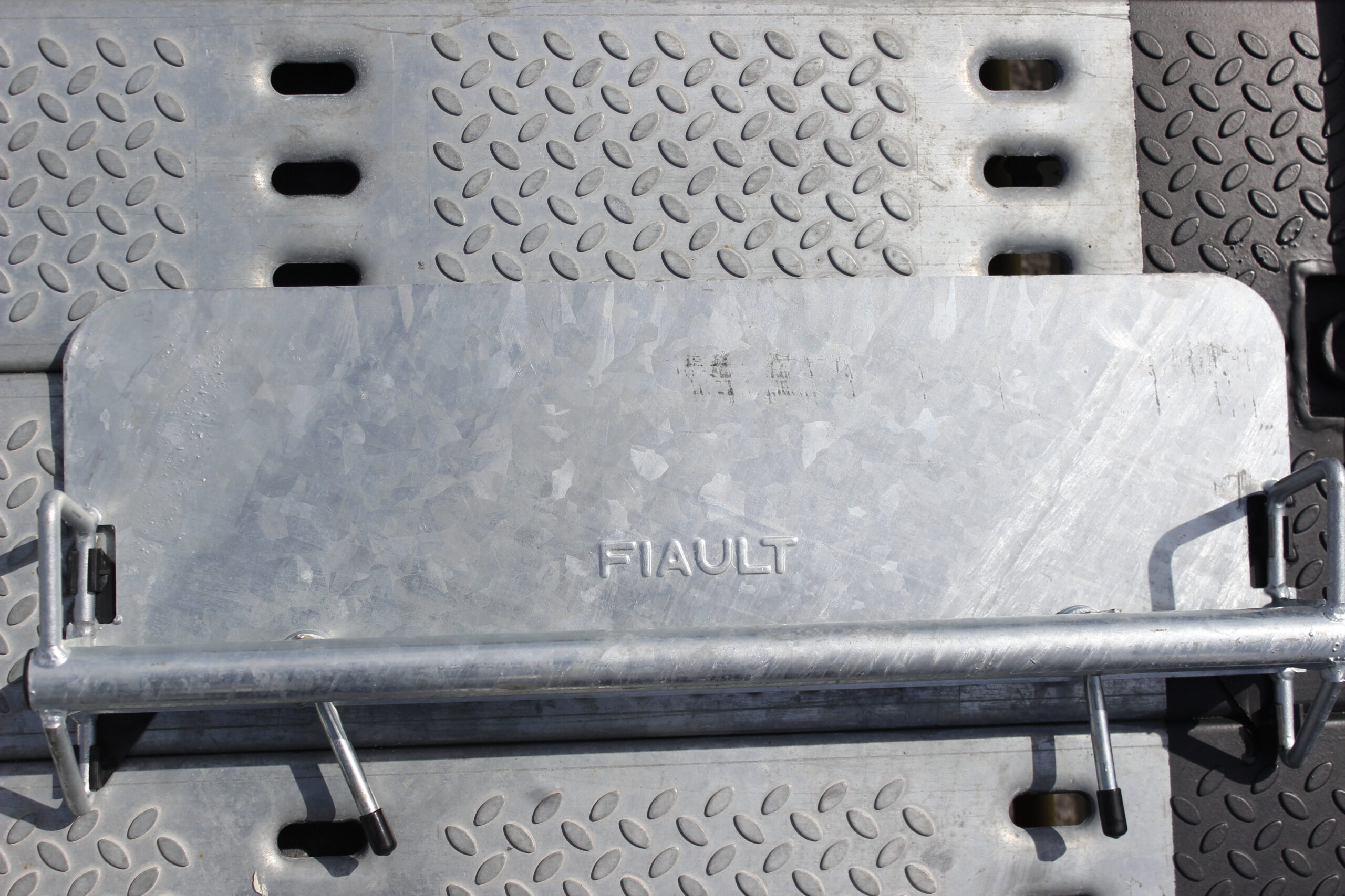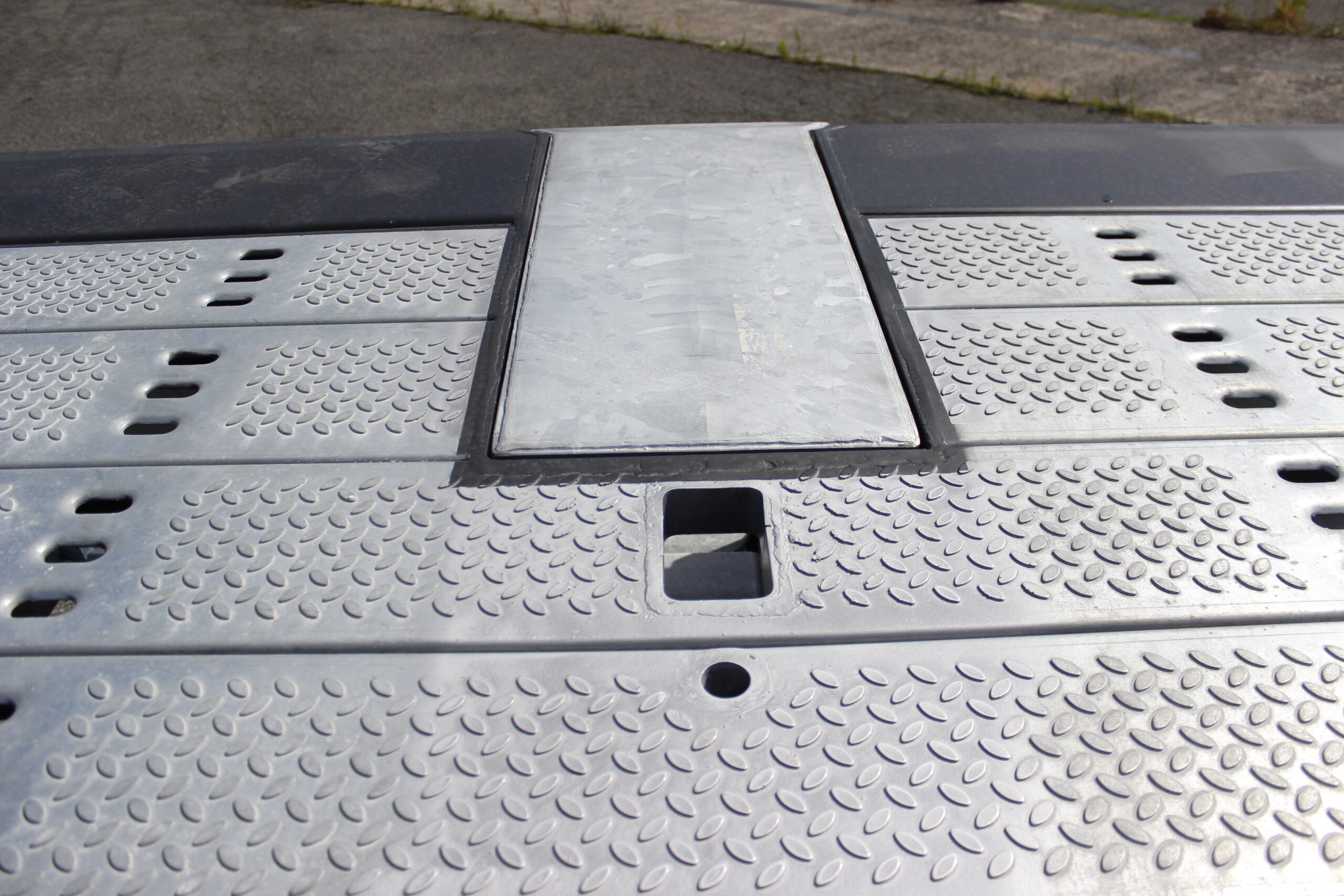 -Plancher avec éléments modulaires GALVANISES type caillebotis (sans peinture), bords de rives avec plats 10mm et trous de calage sur toute la longueur (largeur utile 2380mm)