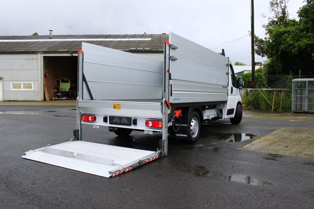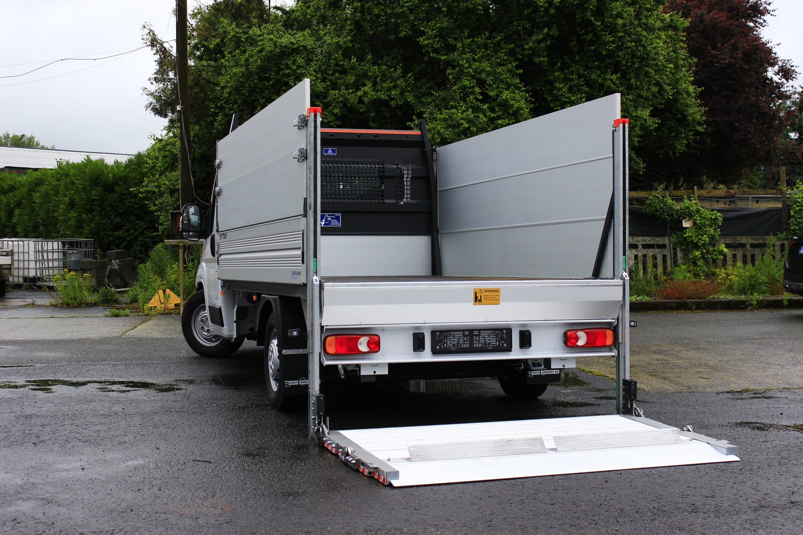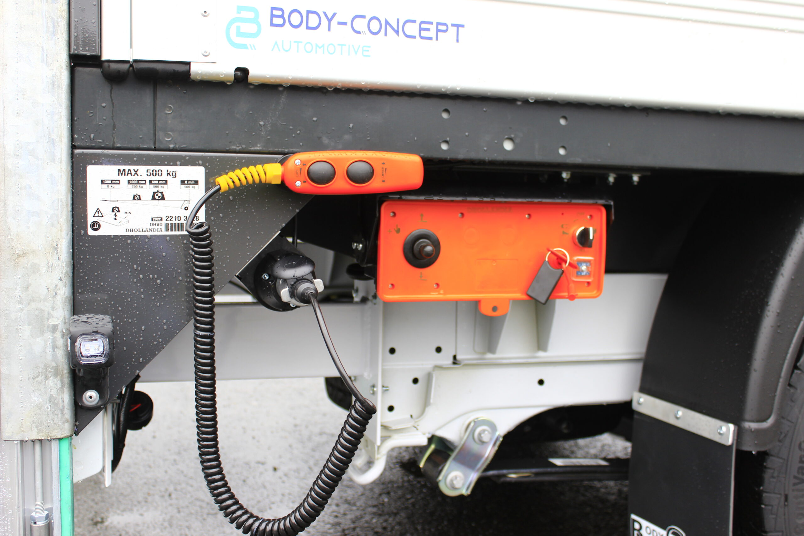 ✅Remplacement de la ridelle arrière par un hayon à colonne Dhollandia DH-VOP fonctionnant sur système électrique autonome.