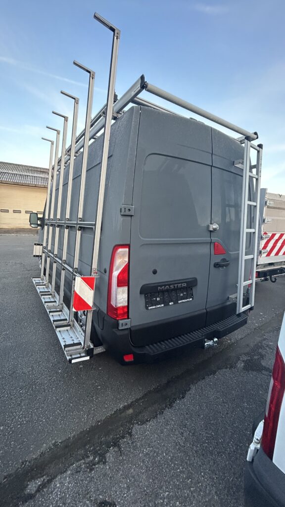 Fourni avec des barres de maintien à encocher. Marquage de gabarit avec autocollant rétroréfléchissant.